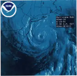 The 20th century saw eight hurricanes making landfall in New England; out of these the more notable include the 1938 New England hurricane (also called the Long Island Express), which made landfall as a major hurricane;[89]Hurricane Carol did the same sixteen years later.[90] The last hurricane to make landfall in New England was Hurricane Bob in 1991 as a Category 2 hurricane with maximum sustained winds of 100 mph.[91]