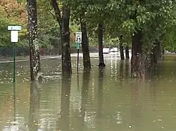 Most commonly, New England will see the remnants or weakening stage of most tropical cyclones that make landfall either along the United States east coast or Gulf coast. This can sometimes lead to excessive rainfall, and in some cases destructive flooding. Hurricane Diane in 1955 produced over 19 inches of rain in Massachusetts and contributed to the 1955 Connecticut floods, one of the worst flooding events in Connecticut's history.[2] More recently, in 2011, a weakening Hurricane Irene produced historic flooding in Vermont, causing over $175 million in damage.[3]