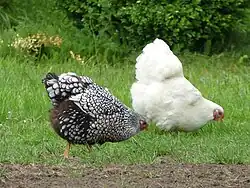 ![]() silver laced and white hens |