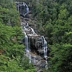 Mountain Waterfall Byway Follows Harshaw Road (SR 1558), Brasstown Road (SR 1134), Old US 64 (SR 1100), Settawig Road (SR 1135) and US 64. Named for the 200 waterfalls that surround the route, it passes by notable sites including the Cullasaja Gorge, Highlands, Cashiers and Lake Toxaway. 98.0 157.7 [9]