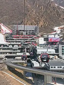 The Rosa Khutor Alpine Resort was part of the "mountain cluster" of Olympic venues and housed around 3,000 people. [37][38]