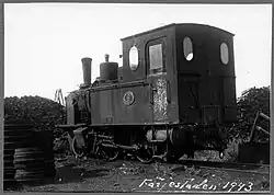 0-4-0 | 600 mm (1 ft 11+5⁄8 in) | 20 hp | Delivered via the Swedish general agent Carl Ström to the Hamra–Tumba Järnvägen of Gustaf de Laval on Gotland in Sweden. From 1916 owned by the construction company Byggnads AB, who sold it to the city of Stockholm in 1917 for work on Hammarbyleden.[4] |