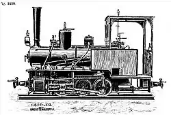 0-4-0 | 600 mm (1 ft 11+5⁄8 in) | 20 hp | Delivered via the O&K sales office in Budapest to Earl Károly Imre in Nagymágócs near Oroszhaza. 1941 used at the fortifications in Szolyva and in 1945 returned to Mattersburg in Austria. Now being operated in Feld- und Industriebahnmuseum Freiland, Austria.[3] |