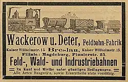 0-4-0 | 900 mm (2 ft 11+7⁄16 in) | 80 hp | Wackerow & Co, branch office Berlin |