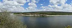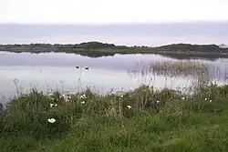 A 5 km long and 2.5km wide, permanent, alkaline, freshwater lake, surrounded by grassland.
