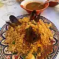 Couscous alla trapanese typical of the Trapani area, with vegetables, and fish