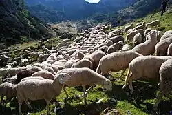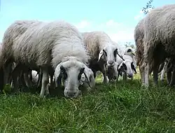 Istrian milk,[52] Istrian Pramenka[53] Istrska pramenka,[5] ovca IP,[54] istrijanka, primorska ovca, ovca surove volne, kraška ovca[55] Ovis aries Karst and Istria[5] Around 930–1100 in Slovenia (y. 2020)[56] Sheep are white, with blackish spots covering their trunk and head. Some animals are black. This breed's feature is a poor hairiness of animal's legs.[57]