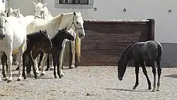 Lipizzan[23] Lipicanski konj,[5] lipicanec[24] Equus caballus Lipica, Slovenian Karst[5] Around 1220 in Slovenia (y. 2020)[25] Warmblood. Foals are black or bay. While aging horses become gray.[5]