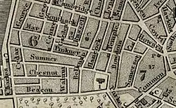- Clapboard Street (between Cambridge and Myrtle Streets in 1735)