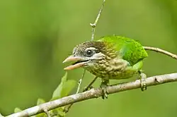 The leafbirds are small, bulbul-like birds. The males are brightly plumaged, usually in greens and yellows.