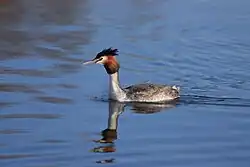 Grebes are small to medium-large diving birds with lobed toes and pointed bills. They are seen mainly on lowland waterbodies and coasts. They feed on aquatic animals and nest on a floating platform of vegetation. There are about 19 species worldwide with five in Leicestershire and Rutland.