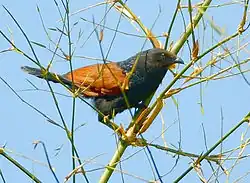 35 bird species are confirmed as endemic,[1] the latest addition being the Sri Lanka shama, which previously considered as a subspecies of the white-rumped shama. The other resident species are also found in the nearby Indian mainland, but over 80 have developed distinct Sri Lankan races. Some of these races are very different in their plumage characteristics from the related forms in India. 26 species are globally threatened.