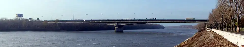 Originally named Bridges of Dukla Heroes, the bridge is a two-floor, railway and highway bridge close to the Bratislava's Port. It is a part of the D1 motorway. Its length is 599,4 metres. There is also a pedestrian and cyclist section, water pipeline, gas pipeline and others. It was built within 1977 – 1985. Every day, 120.000 vehicles cross the bridge. It is the city's busiest bridge.[5]
