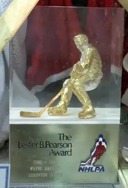 He won nine Hart Trophies, the NHL's most valuable player award, and eight of these were awarded in consecutive years from 1980 to 1987. Gretzky holds the record for most MVP awards of any player in North American professional sports.