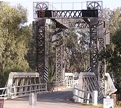 Nyah Bridge | 35°10′22″S 143°23′30″E / 35.17278°S 143.39167°E | Nyah to Koraleigh | 1941 | 104 metres (341.2 ft), central lift span | |