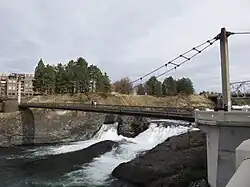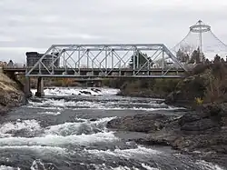 Replaced 1892 bridge; converted to footbridge in 1988.[1] Carries Spokane River Centennial Trail[2]