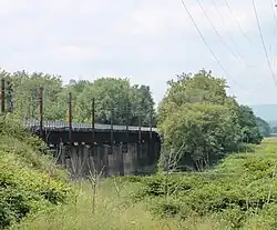 | Ryndes Bridge | A Delaware and Hudson Railway Trestle bridge named in honor of D&H Engineer James Ryndes, who died when an earlier bridge at the same location collapsed underneath his train and fell into the Susquehanna River. This bridge is located in the SE corner of Town of Otego just west of the I-88 Town of Otego Bridges and 2.85 miles north of Otego Village. | |||||