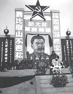Mátyás Rákosi, the leader of the Hungarian People's Republic, was surrounded by a cult of personality similar to that of Stalin.[70] This peaked on his 60th birthday in 1952, which was commemorated with a series of nationwide celebrations.[71][72] Many things were named after him, including: