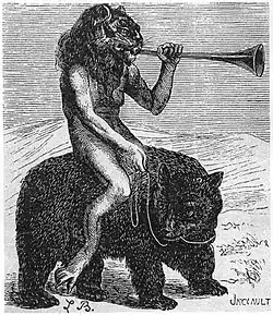 4. Purson (also Curson, Pursan) is a Great King of Hell, being served and obeyed by twenty-two legions of demons. He knows of hidden things, can find treasures, and tells past, present and future. Taking a human or aerial body he answers truly of all secret and divine things of Earth and the creation of the world. He also brings good familiars. Purson is depicted as a man with the face of a lion, carrying a ferocious viper in his hand, and riding a bear. Before him, there can be heard many trumpets sounding. This demon blows internal trumpets, and is believed connected to the revelator to the Antichrist.
