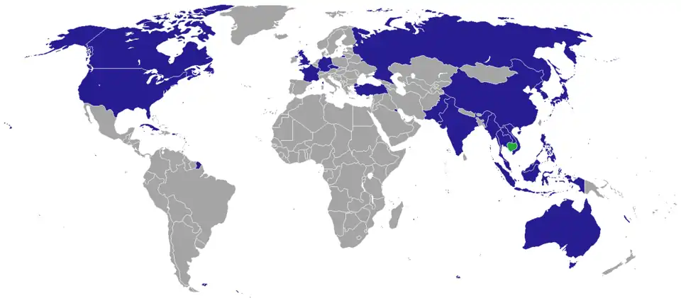 1. ^ a b c d e f g h i j k l m n o p q r s t u v w x y z aa ab ac ad ae af ag ah ai aj "Resident Missions". Ministry of Foreign Affairs & International Cooperation of Cambodia. Retrieved 29 May 2025.