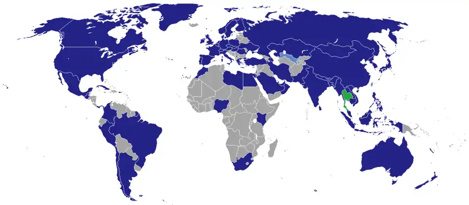 1. ^ a b c d e f g h i j k l m n o p q r s t u v w x y z aa ab ac ad ae af ag ah ai aj ak al am an ao ap aq ar as at au av aw ax ay az ba bb bc bd be bf bg bh bi bj bk bl bm bn bo bp bq br bs bt bu bv bw bx by bz ca cb cc cd ce cf cg ch ci cj ck cl cm cn co cp cq cr cs ct cu cv cw cx cy cz da db dc dd de df dg dh di dj dk dl dm dn do dp dq dr ds dt du dv dw dx dy dz ea eb ec ed ee ef eg eh ei ej ek el em en eo ep eq er es et eu ev ew ex ey ez fa fb fc fd fe ff fg fh fi fj fk fl fm fn fo fp fq fr fs ft fu "Diplomatic and Consular List / June 2025" (PDF). Ministry of Foreign Affairs of Thailand. June 2025. Retrieved 24 July 2025.
