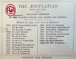 The Aesculapian Club has had many notable former members. The following sections give a list of former members of the Club in chronological order of their year of election.[ 1] [ 2]