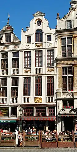 Private houses | Two private houses under a single façade. The gable, destroyed in the 19th century, was completely reconstructed in 1896–1899 by Adolphe Samyn after a watercolour by Ferdinand-Joseph De Rons from 1729.[15] |