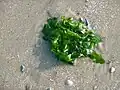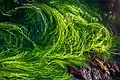 Green macroalgae are extremely diverse and abundant, coming in a wide variety of shapes. They possess the pigment Chlorophyll which gives them their coloration ranging from bright green to yellow or dark jade. Reproduction via fragmentation or the releasing of spores are utilized by this macroalgae group. The second option, which is used by the genus, Caulerpa, can be quite problematic in an aquarium.[21] Some species of green macroalgae have greater ease surviving in high nutrient environments or inadequate water parameters than other kinds of macroalgae and are generally the most suitable for nutrient removal due to their rapid growth rates.[22]