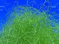 Chaetomorpha sp. Easy[65] Fast[65] Excellent[65] Low-High[65] Moderate[65] Not really[65] Also called Chaeto, this algae grows as a tangled mass of green filaments and originates from shallow, nutrient rich environments. It is incredibly popular with aquarists since it serves as habitat for microinvertebrates (such as amphipods and copepods) and rapidly consumes excess nutrients (though care must be taken to replenish these nutrients such as iron, nitrates, and phosphates). For this reason, it is often kept in a refugium where it can either be tumbled or left to float. Despite being hardy and easy to grow, care must be taken to meet the different environmental requirements of the different species of Spaghetti algae.[65][66][67] 24 in (61.0 cm) mound[65]