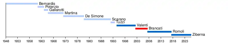 | 1 | Ferruccio Bernardis | 1948 | 1961 | Christian Democracy |