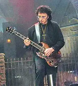 Tony Iommi playing a true left-handed guitar (a Jaydee Custom S.G.)