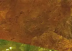 8503 1997 Khyargas Nuur is a large (1,481 km2) salt lake in the Great Lakes Basin of western Mongolia, surrounded by desert and scrub. It is half-way between Uvs Lake, 70 km to the north, and Har Us Nuur National Park, 70 km to the south. The lake is known for hot springs.[8]