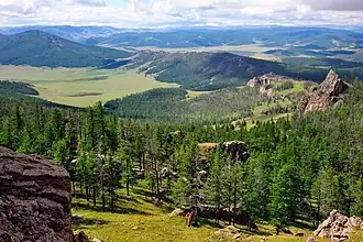 1163 2012 The park covers valleys of the Baidrag River and Zag River as they flow south from the Khangai Mountains in west-central Mongolio.[47]