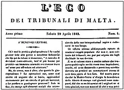 L'Eco dei Tribunali di Malta Italian 1843 pre-1899[5] [4]: 12