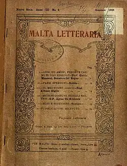 Malta Letteraria (nuova serie) monthly Italian 1926 1939 edited by Giovanni Curmi as "rassegna mensile di cultura".[4]: 21–22 [15][13]
