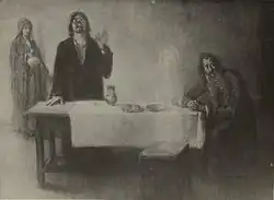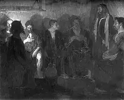 Tanner can be identified by his signature in these works. | Historical painting for magazine, not used. Three other paintings illustrated the article, called The Witch Hunt, by Louise Stockton, in Our Continent magazine, August 30, 1882, pages 233–235.[19] | The Witch Hunt | ![]() |