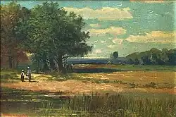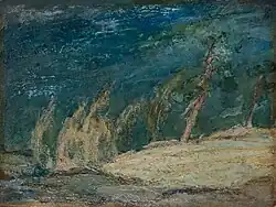 Similarity: Tanner painted a work titled "Scrub Pine Land", exhibited in 1894 and unknown today, painted in Florida.[48] | untitled landscape[46][47] | Robert W. Woodruff Library, Atlanta University Center, Oil on canvas, 33 1/2 x 27 1/4 in.[46] | ![]() | ||