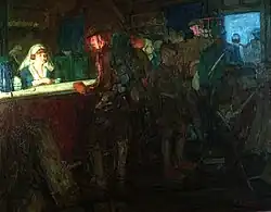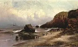 Landscape done near the end of his time studying at the Philadelphia Academy. Installed at the Green Room, White House.[28] | Sand Dunes at Sunset, Atlantic City[26] or Back from the Beach[27] | White House Historical Association, 995.1759.1.[27] Oil on canvas, 30 3/16 x 59 7/16 in.[26] | ![]() | ||