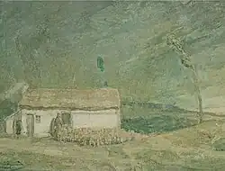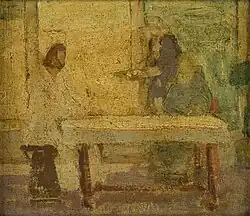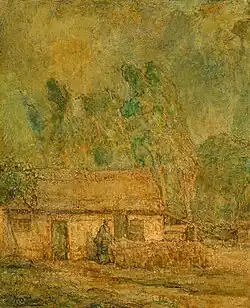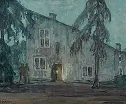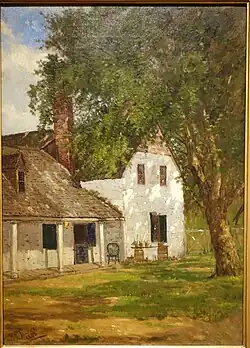 Tanner grew up in Pennsylvania near the house of Nicolas Wynkoop, who built it in 1739. That house would later be owned by "abolitionist" Judge Henry Wynkoop, who freed his slaves.[33] Some of Judge Henry Wynkoop's slaves chose to remain with his family after receiving freedom on his death; a tree became their cemetery marker.[33][34][35] | Picture of a different Wynkoop house in Harlem, Manhattan, New York City dated with signature 1888. Tanner may have painted this as a symbol with civil rights in mind.[33] | Wynkoop House, Old Haarlem | New Britain Museum of American Art, 1984.86. Oil on canvas, 18 1/2 x 13 1/4 in.[32] American realism | ||