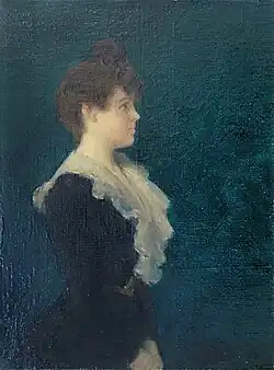 | undated[55] | Attended Philadelphia Academy of Fine Art about 1879–1885. Struggled to make living as artist. Beginning January 1891, attended school at the Academie Julian in Paris | Place and time painted unknown. Clearly imitating Briton Riviere's Daniel's Answer to the King | untitled. Online labeled Daniel in the Lion's Den[55][56] | Private collection. Oil on canvas, 29 1/2 x 43 in.[56] | ![]() |