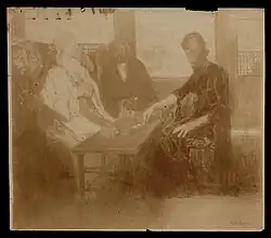 Portrait of a girl; "My Sister Sara" is written on lower right. Tanner had a sister Sarah Elizabeth Tanner who was 9 years old in 1882.[18] | Sister Sara[17] Done while Tanner was at the Philadelphia Academy. | Private collection. Oil on canvas, 16 x 13 in.[17] | ![]() | ||