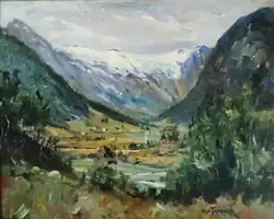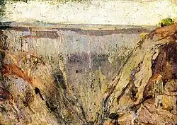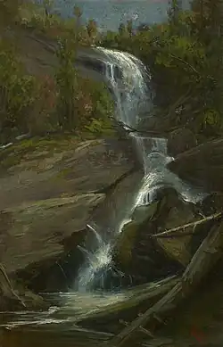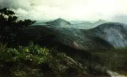 Tanner visits Highlands, North Carolina, with the idea that he could make money with his camera and pay for the trip.[40] | Painting likely of the Cumberland Mountains.[41] | Mountain Landscape, Highlands North Carolina[39] | Doris Ulman Galleries, Berea College Art Department, Kentucky, 140.O.95. Oil on canvas. 23" x 36"[39][42] | ![]() | |