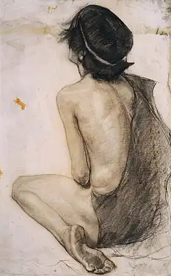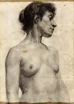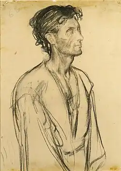 Tanner spent time studying the nude form at the Pennsylvania Academy of Fine Art.[29] | Painting was a study for a planned painting of a mythological scene of Androcles with a lion.[29] | Study for Androcles[29] | Private collection. Oil on canvas, 31' x 18"[29] | ![]() | |