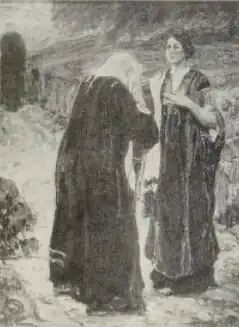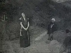 Tanner can be identified by his signature in these works. | Historical painting for magazine, illustrating the article, called The Witch Hunt, by Louise Stockton, in Our Continent magazine, August 30, 1882, pages 233–235.[19][23] | Gathering Faggots[19] and At the Well[19] | ![]() |