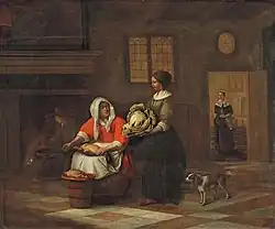 Interior with a woman knitting and a maid with a girl | 1673 | 72.4 × 62.7 cm | City of London Corporation | London | |