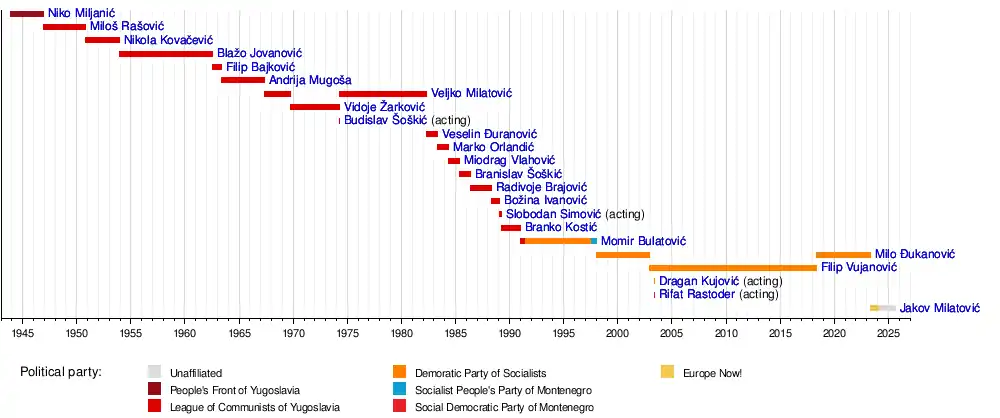 - List of heads of state of Montenegro, for a comprehensive list of Montenegrin heads of state since 1696