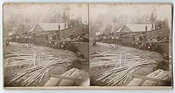 Three stereoscopic views of the wreck on the Houston East and West Texas Railway north of Lufkin, Texas