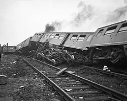 February 9 – United Kingdom – Two coaches of a London-bound commuter train caught fire as it moved at around 65 miles per hour (105 km/h) before being stopped near Radlett, 20 miles (32 km) north of London. Thirty-three persons, many of them with burns, were taken to hospitals. Others were treated beside the tracks after passengers pulled the emergency cord. The chief test pilot for the nearby Handley Page aircraft plant sounded an alarm that brought firemen and ambulances to the scene within minutes and notified a signalman to halt following trains. The fire was caused by a drive shaft, believed to have broke due to the presence of instrumentation as part of a trial, puncturing a fuel tank.[107]