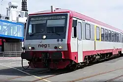 Niebüll – Uphusum – Süderlügum – TønderTønder Nord – Visby – Bredebro – Døstrup Sønderjylland – SkærbækBrøns – Rejsby – Hviding – Ribe – Ribe Nørremark – Gredstedbro – Sejstrup – BrammingTjæreborgEsbjerg 136.1 60 min Class 5047, Class 629/628 Norddeutsche Eisenbahn Niebüll