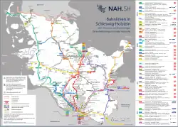 Railway routemap of Schleswig-Holstein (as of December 2017)